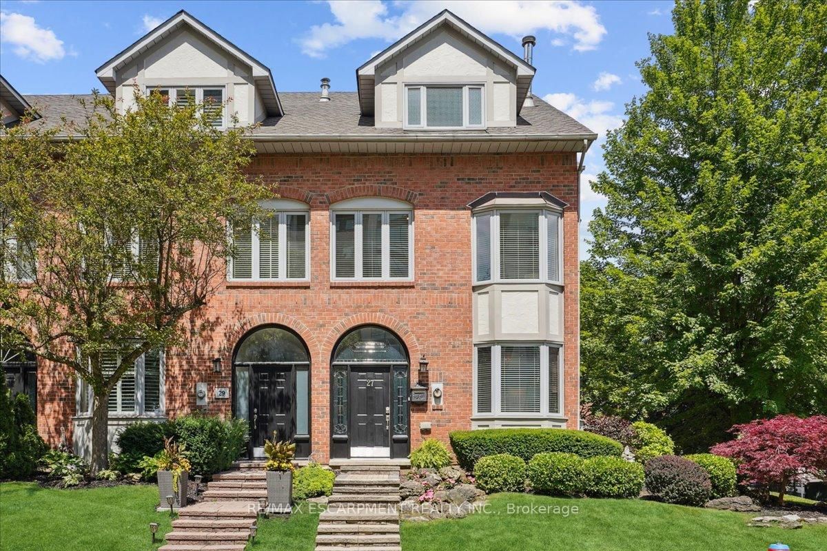 Luxury, Lifestyle and Lake views at its finest in this elegant brownstone FREEHOLD END UNIT townhome situated in the highly coveted neighbourhood of Bronte. This home is nestled on a very private and picturesque cul-de-sac and offers partial lake views from a variety of vantage points of the property. Rarely available in this area, this 3 bedroom, 3 bathroom property at approximately 2600 square feet of living space, boasts high-end custom finishes and built-ins on all levels and parking for 5 cars! The spanning living and dining room with a stunning floor-to-ceiling stone gas fireplace opens to a large private deck with lake views and plenty of sun all day long. The eat-in gourmet kitchen with granite counters and stainless appliances also features a convenient moveable island while accommodating room for a dining table and seating. On the second level, there is a large and bright upper-level family room with a secondary gas fireplace - also perfect as a library/den. The lake views here are simply stunning. Additionally, there are two bedrooms with double width closets, a separate laundry room and a 4-piece bathroom. The upper level is exclusively reserved for the primary suite with a walk-out balcony with lake views and a generous-sized ensuite, leaving you with a sense of total calm and serenity. Set among multi-million dollar townhouses and just steps away from the Bronte Marina, cool local shopping, great restaurant venues, and the best community events in Oakville, this home represents the ultimate of turn-key living. If you're downsizing, up-sizing or right-sizing and seeking a lifestyle of luxury, convenience and beautiful surroundings year round, this home is a must-see!