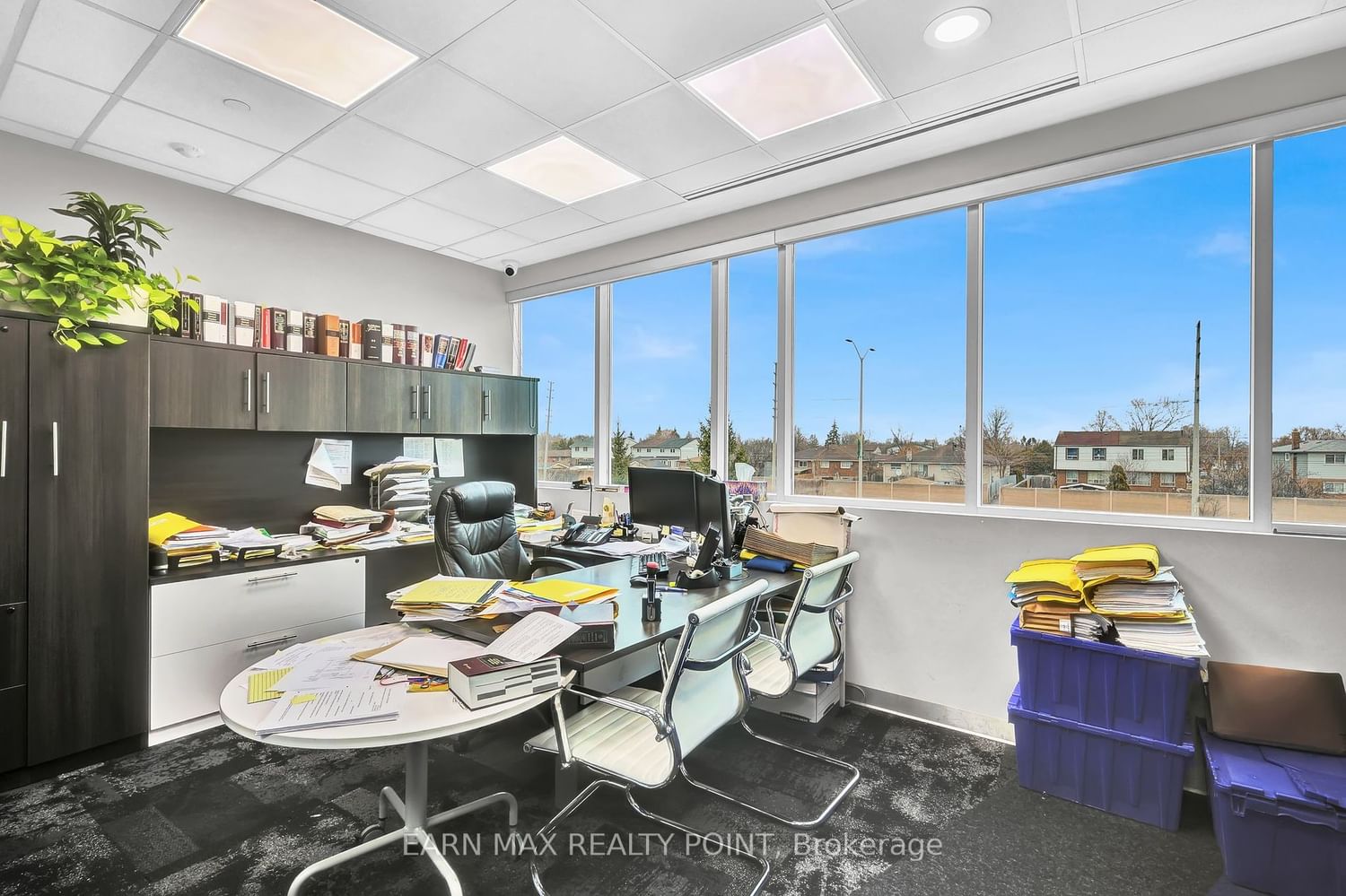 Welcome to an extraordinary opportunity in the vibrant heart of Mississauga's premier plaza district! This impeccably furnished 1241 square feet office space exudes sophistication and functionality, boasting high-end furniture and a meticulously crafted interior design that reflects thousands of dollars invested in architectural excellence. Situated mere minutes from major highways and an international airport, accessibility is unrivalled, ensuring seamless connectivity for clients and staff alike. Facing the main airport road, this unit offers prime visibility for impactful signage display, capturing the attention of a diverse audience and maximizing business exposure. Perfectly suited for professionals in law, accounting, immigration, real estate, and various other professional services, this space offers a refined environment conducive to productivity and client satisfaction. Elevator access ensures convenience, while ample parking facilitates hassle-free visits for employees and guests. Furthermore, the inclusion of hydro and water in the maintenance fee provides added convenience and cost-effectiveness. Explore the potential for expansion or customization with adjoining units available for sale in separate TRREB MLS listings, offering a total of approximately 8,500 square feet of versatile space to accommodate your evolving business needs. Don't miss this rare opportunity to elevate your business presence and performance within one of the GTA's busiest and most sought-after plazas. Schedule a viewing today and discover the possibilities that await in this exceptional commercial space!