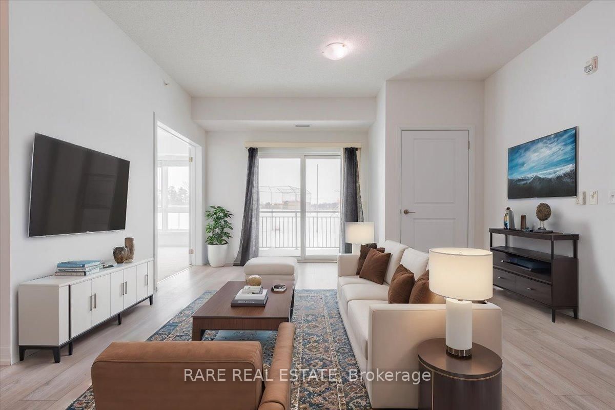 Welcome to the Junction Condominiums - a bright and spacious three-bedroom 1,244 SQFT ground-level unit , ideally located near shopping, entertainment, RVH hospital, and Georgian College! This inviting condo offers an open-concept kitchen, living, and dining area, perfect for entertaining or spending quality time with family. Step outside onto your private balcony, overlooking the neighbouring school, and enjoy a peaceful retreat. The generous primary bedroom features large windows, filling the room with natural light, and a spacious 4-piece ensuite bathroom for added comfort and convenience. On the opposite side of the condo, the second bedroom and 4-piece bathroom provide extra privacy, making it a perfect layout for family members to have their own space. Adjacent to the living room, the third bedroom is versatile ideal as a home office, gym, or guest room. With large windows, its the sunniest spot in the unit. The home also boasts the convenience of in-suite laundry, with the water heater and water softener system conveniently located near the front entrance. Best of all, there are no rental contracts for any of the equipment! Additional perks include underground parking (1 spot) and a storage locker, ensuring your belongings are safely stored and easily accessible. Just a short walk to North Barrie Crossing Shopping Centre, you'll have quick access to shopping, restaurants, entertainment, and all the essentials you need. Plus, with Highway 400, Georgian College, and RVH Hospital just minutes away, this location offers unbeatable convenience for your lifestyle. Come see all that this wonderful home has to offer!