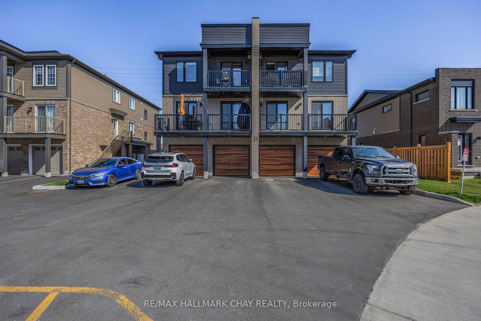 Stylishly Upgraded Condo Townhome In Barrie's Desirable Southeast End. Step Into This Beautifully Upgraded Condo-Townhome That Seamlessly Blends Modern Design With Practical Living. No Detail Was Overlooked & No Expense Sparred Featuring An Oversized Kitchen Outfitted With White Shaker-Style Cabinetry, Soft-Close Doors, Sleek Black Hardware, Upgraded Black Faucets, Under-Cabinet Lighting, And A Premium Stainless Steel Appliance Package. The Show stopping Oversized Island Boasts Quartz Waterfall Countertops, Perfect For Entertaining. Enjoy Open-Concept Living With Pot Lights And High-End Vinyl Flooring Throughout. The Spacious Living Room Is Flooded With Natural Light From Large South-Facing Windows, Complemented By 'Hunter-Douglas' Automatic Blinds And A Generous Balcony Ideal For BBQs And Soaking In The Sunshine. You'll Find Three Spacious Bedrooms, All With Upgraded Closet Doors, Black Hardware, And Continued Vinyl Flooring. The Primary Retreat Includes A Walk-In Closet And A Beautifully Finished 3-Piece Ensuite With A Glass Walk-In Shower And Quartz Vanity. The Two Additional Bedrooms Share A Modern 4-Piece Bathroom, Also With Quartz Countertops. Additional Highlights Include A 1-Car Garage With Inside Entry And An Automatic Door Opener, A Dedicated Outdoor Area With Potential For A Private Fenced Yard, And Visitor Parking For Guests. Conveniently Located Near Park Place, Friday Harbour, Beaches, Top-Rated Schools, Golf Courses, And Everyday Amenities. Also Easy Access To Go-Train & Highway 400 For Commuters Or Going To The GTA For More Entertainment.