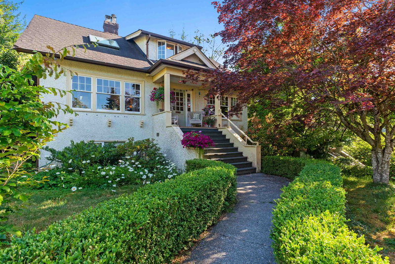 This meticulously maintained Point Grey family house offers stunning mountain views from a tranquil, cherry blossom-lined street. Numerous upgrades include the roof, skylights, furnace, windows, drain tiles, and new hot water tank(2023). 2 bedrooms upstairs, one on the main floor, and 2 downstairs with a separate entrance, the layout allows for easy conversion into a suite. Prime location close to Lord Byng Secondary, Queen Elizabeth Elementary & West Point Grey Academy. Easy access to UBC, beach parks and West 10th shop street. Whether you invest or build your dream home, this property presents an ideal opportunity!