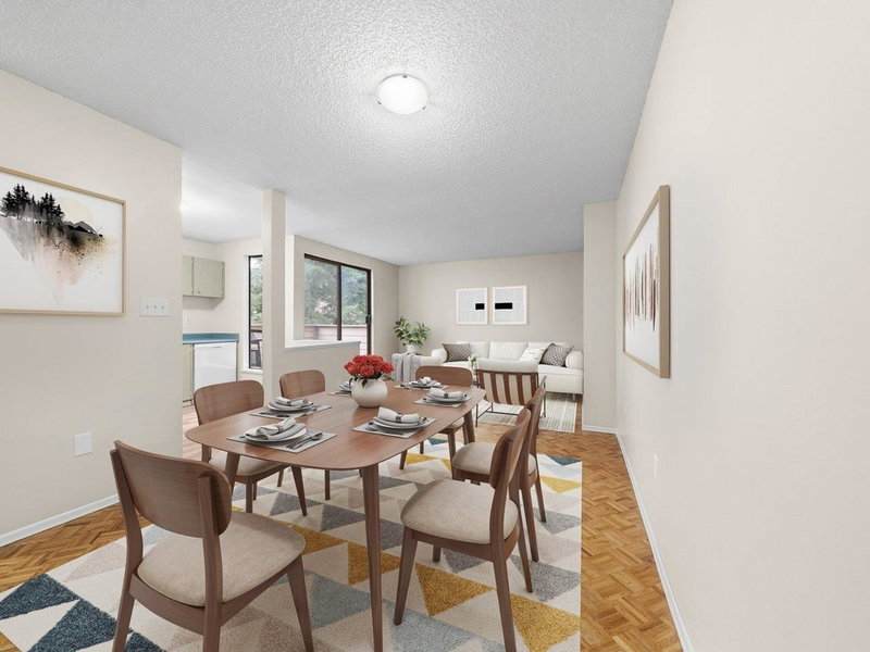 Bright and well-proportioned home featuring generous windows, two spacious bedrooms, and a private patio with peaceful forest views. Tucked away on a quiet cul-de-sac, this corner unit offers exceptional privacy and a townhouse-style layout with only one neighbouring unit above and below. Includes in-suite laundry. Comes with a covered, secure (camera-monitored) parking stall. Enjoy the seasonal pool and sauna, community garden, and direct access to Burnaby Mountain hiking trails. Set within a low-density 20+ acre community with mature landscaping, walking paths, and playgrounds. Conveniently located near Stoney Creek Community School, Burnaby Mountain Secondary (approx. 15-minute walk), Lougheed Mall, and SkyTrain. A great opportunity for first-time buyers or investors alike.