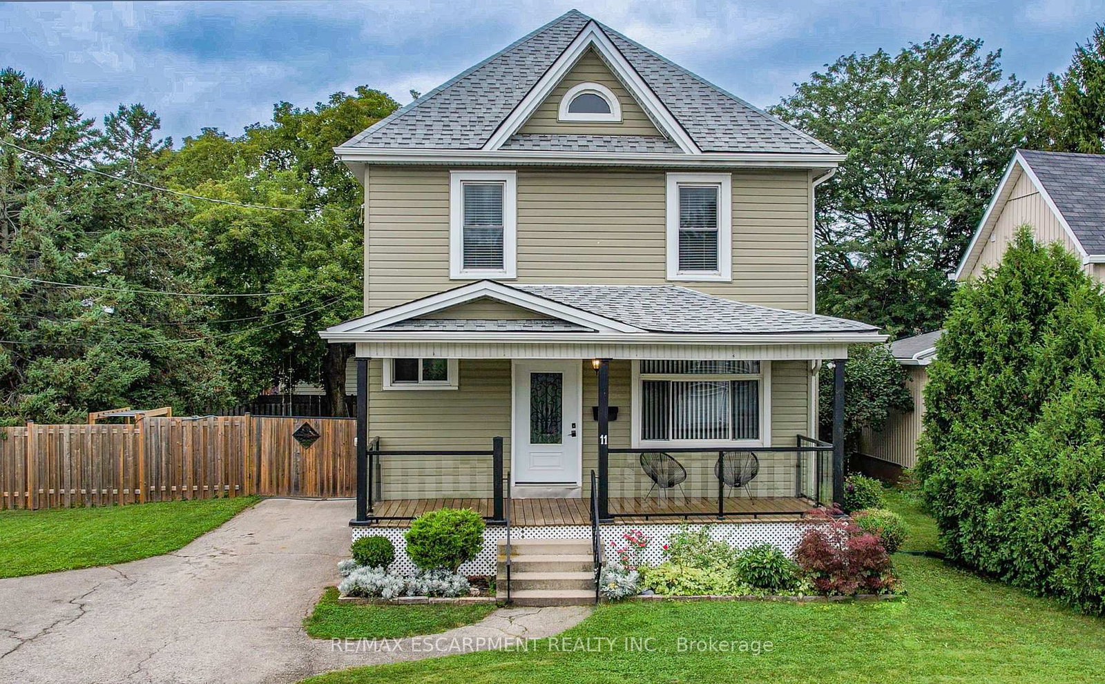 RENOVATED FAMILY HOME ... Located on the lakeside of town at 11 Fairview Road in Grimsby, find this BEAUTIFULLY UPDATED, 5 bedroom (MF primary!), bedroom (MF primary!), 2 bath, 2-storey home on a 60 x 115 lot with a huge, private yard with fruit trees. A big, covered porch w/modern glass railings welcomes you into the bright and spacious interior featuring GLEAMING floors and UPGRADED light fixtures throughout. Living room w/decorative stone accent wall receives abundant natural light through the large, transom window, plus potlights and crown moulding that continue through into the dining room. Glossy porcelain floors lead from the foyer into the stunning CHEF'S KITCHEN w/stone countertops, backsplash, and plentiful cabinetry. MAIN FLOOR Primary bedroom (could also be used as an office or games room), lovely 4-pc bath w/porcelain tile, and laundry room w/access to outside completes the level. Wooden staircase leads to the upper level featuring an UPDATED 3-pc bath w/glass shower and four bedrooms one w/access to the BONUS den/sunroom overlooking the fenced, private backyard that is surrounded by mature trees. Basement provides plenty of storage. DOUBLE DRIVE drive w/PARKING for 3 cars or space for a BOAT or RV! Close to great schools, parks, town, and just 2 minutes to QEW access. CLICK ON MULTIMEDIA for video tour, drone photos, floor plans & more.
