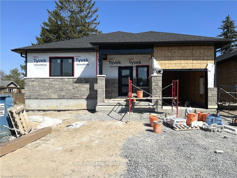 New, under construction. 3 bedrooms, 2 bathrooms, bungalow in a mature neighbourhood set on a wide lot on a quiet cul-de-sac. Spacious open concept living area with 9 feet ceilings on main floor. Upgraded kitchen features QUARTZ counters, tiled BACKSPLASH, large island with 3-sets of drawers and extended eating bar, deep PANTRY cabinet, well-appointed cabinetry, extended upper cabinets, and gabled fridge opening. Patio doors allow in lots of light to the kitchen and open to rear yard. Large primary bedroom with ensuite and walk-in closet. Upgraded ensuite bathroom features a tiled shower, QUARTZ counters, and DOUBLE undermount sinks. Laminate flooring in all living areas and bedrooms. Tile flooring in bathrooms and entry. Garage includes interior access to house. High efficiency natural gas furnace and HRV system, as well as AIR CONDITIONER included. Upgraded stone and board and batten vertical siding on front elevation. Smooth finish ceilings throughout. Pot lights in living space, primary bedroom, and ensuite. Full eavestroughs included. Covered front porch. Poured concrete porch. Basement bathroom rough-in. HWT is owned. Main floor laundry. Tarion New Home Warranty. HST included. $25,000 of upgrades are now included in this new home. Located on a quiet cul-de-sac just minutes to shops, Confederation Park, and waterfront. Call for a viewing or more information today! AVAILABLE for immediate offers and quick or flexible closing.
