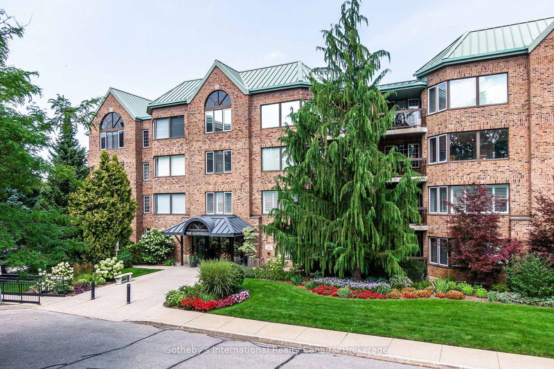 Perched above the picturesque Avon River, this spectacular penthouse at 30 Front Street isn't just a residence, it's a statement. A rare fusion of luxury, design, and location, this is where elevated living meets the cultural soul of Stratford. This one-of-a-kind suite redefines sophistication. Whether you're hosting champagne evenings on your private terrace or enjoying a quiet morning with theatre-district views, this penthouse is where your story unfolds and it's nothing short of extraordinary. Perfectly situated between the Festival and Tom Patterson theatres, this stunning top-corner unit offers an unbeatable location with southwest exposure, just steps from parks, restaurants, and all that downtown Stratford offers. This professionally redesigned residence at The Huntingdon boasts just over 1,500 sq. ft. of elegant living space with a smart, thoughtful layout. Featuring two spacious bedrooms with built-in closet systems, two full bathrooms with porcelain floors, and an inviting living room with vaulted ceilings, oversized windows, and a generous dining area, this suite is designed for comfort and style. A full wall of windows provides beautiful year-round views, while the large private corner terrace is perfect for morning coffee or evening cocktails. This floor plan includes added soundproofing, engineered European white oak flooring, and pot lights throughout. Custom walnut veneer cabinetry by Homestead Woodworking complements quartz countertops, a large island with extra storage, and top-tier integrated appliances: Fisher & Paykel wall oven, microwave, induction cooktop, and Bosch dishwasher. Includes deeded underground parking near the door and elevator, assigned locker, outdoor guest parking, controlled entry, visitor parking, and plans for EV charging. This pet-friendly, quiet building is home to professionals and theatre artists. Fully rebuilt with permits, this home offers a refined, maintenance-free lifestyle in Stratford's most desirable condo.