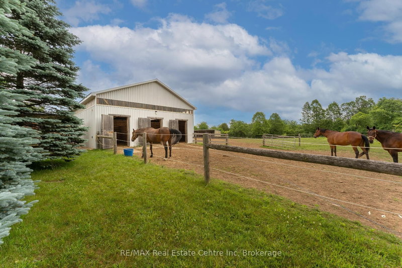 Renovated 3+1 bdrm bungalow W/prof finished in-law suite on 3-acres W/lush pastures & massive 50 X 30ft garage/workshop W/3 stalls-ideal for hobbyists, equestrians or family looking to supplement large portion of mtg W/potential boarding income! Mins from 401 &amenities of South Guelph, this rare gem delivers best of rural charm & modern convenience! Detached garage/workshop features 3 stalls W/handcrafted dbl Dutch doors (back & front of stall) W/access to garage & pasture & heated water buckets. It offers electric hoist & space for equip, tools & toys. Fenced pastures W/electric fencing & large lean-to shelter make this an ideal setup for horse lovers/hobby farmists or those looking to generate extra income. There is a hay shed, storage shed & 1-car garage outbuilding. Every inch of home has been reimagined &rebuilt from the studs up 6 yrs ago offering all benefits of a new build without sacrificing character. Step onto covered front porch & into light-filled living space that exudes warmth & comfort. LR W/hardwood, rustic solid wood beams & floor-to-ceiling stone fireplace W/barnwood mantel. Kitchen W/white cabinetry, leathered granite counters, stone backsplash, S/S appliances, gas stove & island W/bar seating. Ultraviolet lighting for water purification & Fibre optic internet! Primary suite W/4 windows, bench seat, ample closet space & ensuite W/dbl quartz vanity & W/I glass shower. 2 add'l bdrms, main bath & laundry round out main level. Bsmt offers prof finished 1-bdrm in-law suite-flexible living for multigenerational families, guests or teens. Space boasts laminate floors, pot lighting, kitchen, sep laundry & 4pc bath. Host BBQs on back deck W/propane BBQ hookup, gather around fire pit or unwind in front garden W/working well hand pump & shaded sitting area under mature trees. Long driveway & rolling lawn complete enchanting scene. Mins to Morriston's restaurants & bistros. 10-min to amenities of south end Guelph &less than 30-min to Hamilton
