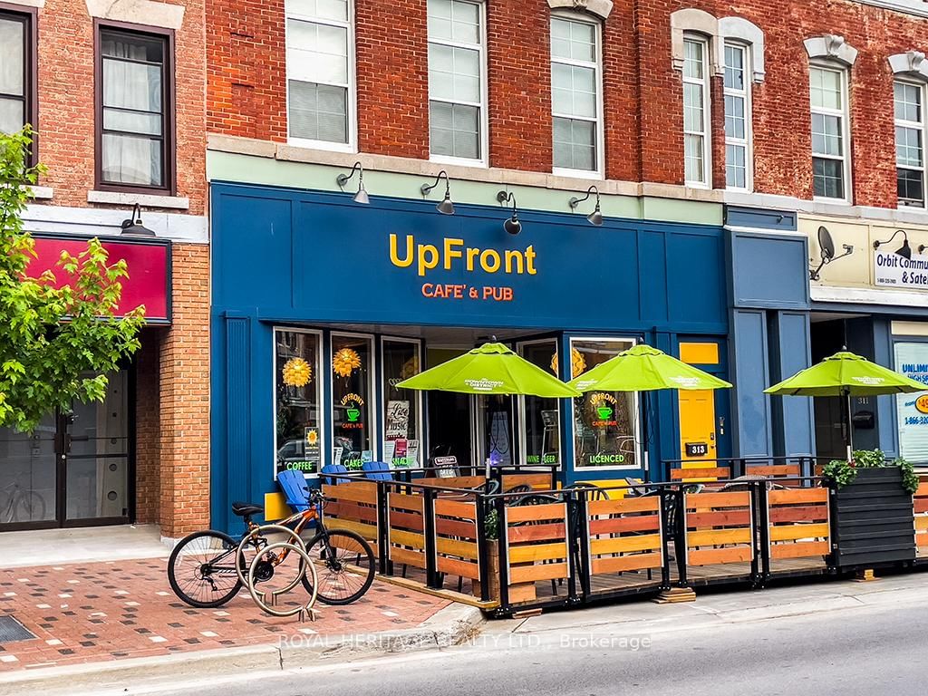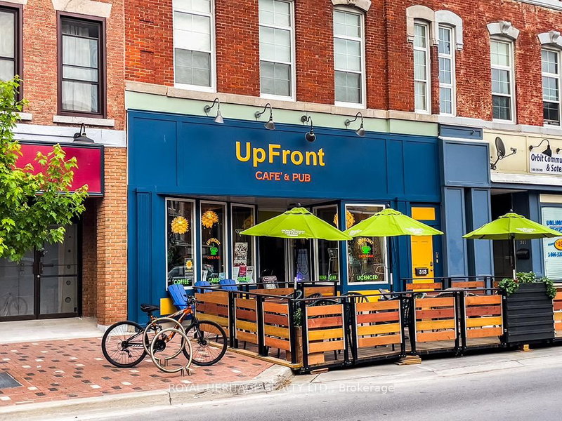 Welcome to Belleville's premiere, café, pub, & performance space. This 60-seat cafe is known Upfront Café & Pub, a fully licensed live music venue & cozy pub atmosphere. Over 2000 sf., with an additional 30 patio seats from May to October. A welcoming place to relax, have a beer, coffee, pastry, snack, or listen to music. Turnkey setup: elevated stage, pro sound, lighting, bar seating & fixtures. Strong loyal brand of music lovers. Prime downtown location w/character & charm. To convert to a full restaurant, the installation of a commercial kitchen is required. Includes Commercial Stainless Steel: Dishwasher/Warming Oven/Sink & Sprayer (2 compartments), Chest Freezer 4', wire shelving units filled w/dishware, appliances, tablecloths & restaurant supplies. There are 3 new bathrooms, 1 wheelchair accessible, built 2024. A storeroom adjacent to the kitchen could easily be converted into additional comm space, w/walkout to parking for 6 cars. Office accessible to storeroom or hallway behind bathrooms. New heat pump 2025, wiring & plumbing completely re-done 2017. Chattels: LG beer fridge bar fridge, 2 draft coolers, pastry display fridge & mini fridge, 16 ft L-shaped oak bar w/brass rail has built-in shelving. An 8 ft. counter on wheels completes the service area. Behind the counter are additional workspaces built-in sinks, a commercial Bunn coffee maker, LG microwave & small appliances. Furniture, transferrable license & social media account incl. Detailed list upon request. Financial statements after a showing, w/a signed NDA. The owner of this successful business is considering retiring. It is open now for many special events. The space would be rented for $2,000 plus utilities. Plenty of public parking, along the Riverfront Trail. Private events, merch or extended hours. Ideal for hospitality pros, artists, or investors seeking a passion driven business. The sky's the limit! For full Chattel List & floor plans, contact your Realtor.