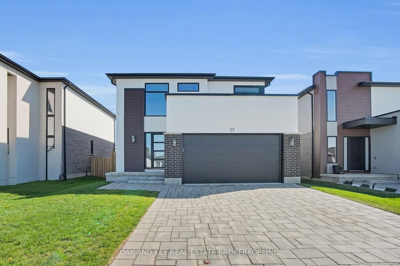 A refined blend of style, function, and location - welcome to 25 Alexander Circle, nestled in one of Strathroy's most sought-after family neighbourhoods. Built in 2020, this thoughtfully designed two-storey home offers 4+1 bedrooms and 2.5 bathrooms across a bright, open-concept layout. The entryway makes a striking first impression with its clean architectural lines, tall ceilings, and modern staircase. Inside, wide-plank floors flow throughout the main level, where oversized windows flood the space with natural light. The open living and dining areas create a seamless atmosphere for both entertaining and everyday living, while the kitchen impresses with two-tone cabinetry, quartz countertops, stainless steel appliances, and a central island with bar seating. A dedicated main floor den offers a quiet and flexible space ideal for a home office, reading room, or playroom. A practical mudroom off the garage adds further convenience to your daily routine. Upstairs, you'll find all four bedrooms, including a generous primary suite with a walk-in closet and a beautifully finished ensuite. A full second bathroom and dedicated upstairs laundry complete the upper level, providing added ease for busy family living. Sliding doors extend the main living space outdoors to a large deck, an above-ground pool, and a fully fenced yard that backs onto open green space offering extra privacy and a peaceful backdrop. Set just minutes from schools, parks, shopping, and every essential amenity, 25 Alexander Circle offers the perfect balance of elevated design and everyday comfort.