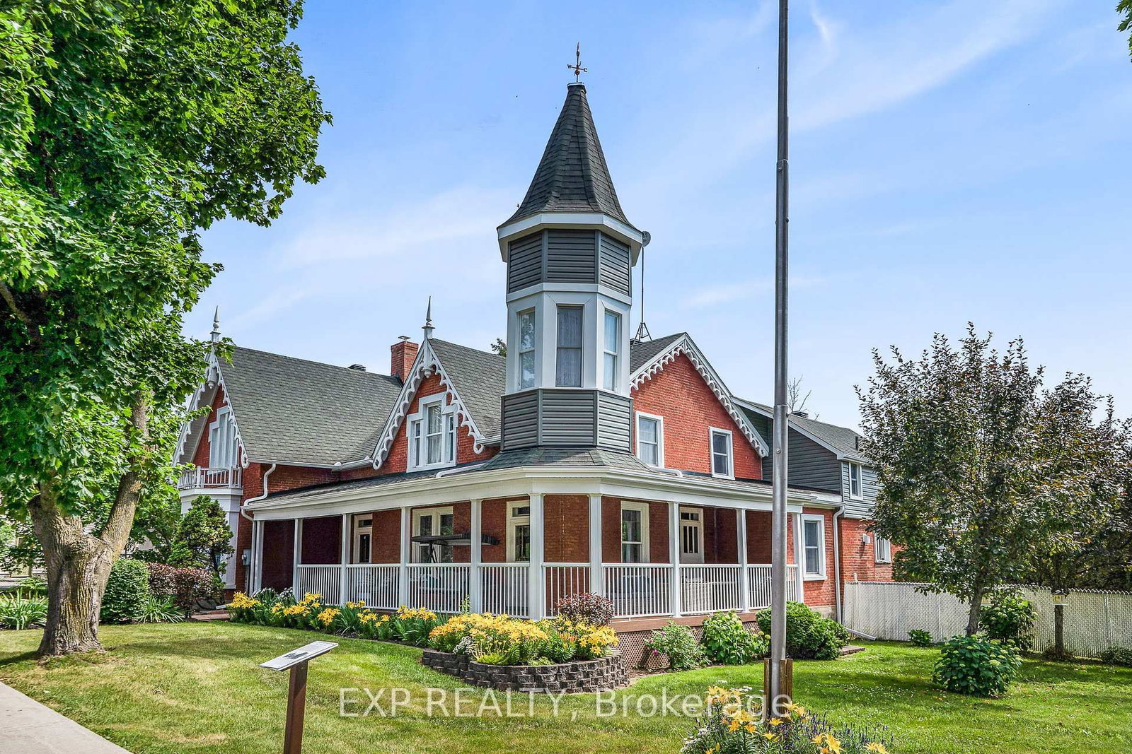 Welcome to the Proulx House, a distinguished 1885 Victorian residence crafted by Eden Philo Johnson, whose lineage ties to the last seignior of L'Orignal. A true architectural treasure, this red brick home stands as a prime example of Neo-Gothic design, featuring two striking front gables with elaborate ornamentation and a commanding pointed tower. Thoughtfully updated with many renovations throughout, this home effortlessly blends historic charm with modern comfort. Step inside to discover a spacious, light-filled main level, where high ceilings, original moldings, and gleaming hardwood floors extend throughout the formal dining room, elegant living room with a marble-accented wood-burning fireplace, sitting room, and inviting family room.The renovated chefs kitchen is complete with granite countertops, stainless steel appliances, and a walk-in pantry. Two offices on the main floor offer ideal spaces for work or study, while a modern 3-piece bathroom and a stylish powder room add everyday functionality. The sweeping circular staircase leads to an expansive second level, where four generously sized bedrooms await. The fourth bedroom offers a private walk-out to a charming balcony - perfect for quiet mornings or sunset views. This level also features a large family room and an additional sitting area, providing ample space for relaxation and family living.Outdoors, the fully fenced yard is your private retreat, showcasing a saltwater in-ground pool surrounded by mature landscaping. The property also includes a single detached garage and an oversized double garage/workshop - ideal for storage, hobbies, or additional parking.Rich in history, enhanced by modern updates, and filled with character, the Proulx House is a rare opportunity to own a landmark home in the heart of L'Orignal.