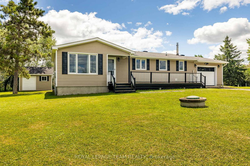 Welcome to this lovingly maintained 3-bedroom, 2-bathroom detached bungalow, oversized single garage nestled on a private 0.5-acre lot with tranquil views of the Gatineau Hills and surrounding farmland in the peaceful community of Woodlawn.The main floor features hardwood flooring throughout the living room and hallway, a spacious eat-in kitchen with solid oak cabinetry, and two bedrooms, including a primary bedroom with direct access to the back deck. The main floor also includes a full bathroom with closet and a convenient laundry/mudroom with access to both the garage and backyard deck.The fully finished basement offers excellent in-law suite potential with a third bedroom, 3-piece ensuite, a large recreation room, and an oversized built-in wet bar ideal for entertaining. Laminate flooring runs throughout the lower level for easy maintenance. Extensively updated in 2013: roof; windows; doors; back garden shed, kitchen; and both bathrooms. Along with upgraded insulation in the attic, basement, and exterior walls. Additional upgrades include a 200 amp electrical service with a 60 amp pony panel for a generator, propane furnace conversion in 2012, an owned hot water tank, and a comprehensive water treatment system complete with UV light and reverse osmosis in the kitchen & wet bar. The oversized single-car garage provides access to the side and back yards, and a large garden shed adds bonus storage space. Enjoy your morning coffee on your front porch or unwind while taking in the peaceful scenery from the back deck. This home is ideal for families, downsizers, or multi-generational living offering country charm just a short drive to city amenities.