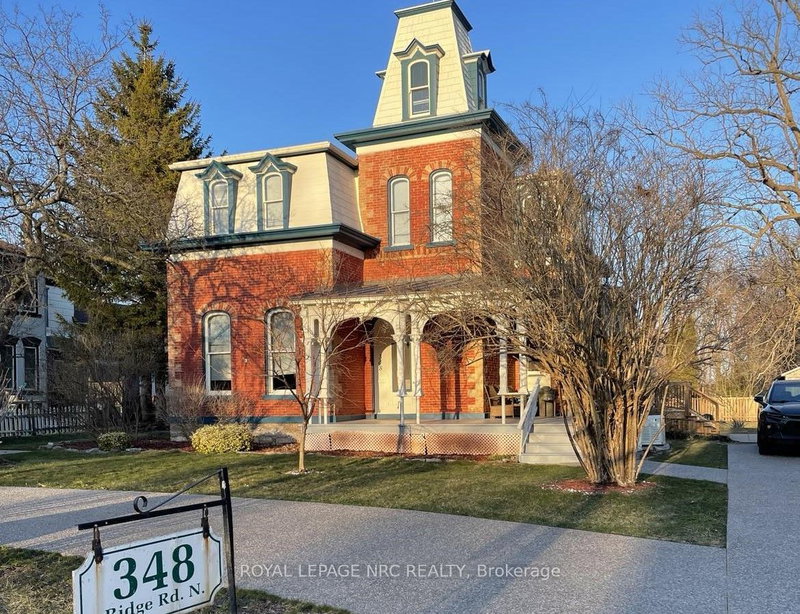 Nestled in the historic village of Ridgeway, 348 Ridge Road North offers a rare chance to own a piece of history. Built in the 1880s, referred to as the Cutler/Morin house, this exquisite Second Empire-style home features a distinctive mansard roof and ornate dormers, symbolizing timeless craftsmanship and architectural beauty. Spanning over 2,800 square feet, it includes six well-maintained bedrooms and 2.5 bathrooms. The west-facing porch provides stunning sunset views for evening relaxation. Inside, the home blends original features with modern updates, including two parlors, a formal dining room, a secondary dining area by the primary bedroom with an updated Zitta shower, and high ceilings that enhance its spaciousness. Original wooden staircases, large windows, and detailed woodwork add historic charm, complemented by two large pocket doors and two gas fireplaces, one with its original mantle. The renovated kitchen features custom cabinetry, quartz countertops, and a copper sink. Central air conditioning adds contemporary comfort. Upstairs, five additional bedrooms and a 1.5 bath setup offer flexibility for family or guests. The largest room, now an office, highlights the homes adaptability. Fresh paint and restored floors freshen many rooms. Outside, a new deck, garden, and orchard create a perfect entertainment space. A spacious workshop and extra storage meet practical needs. Recent updates include a new concrete driveway, a natural gas generator, and durable metal roofing. Heritage-specific financial incentives like tax rebates and maintenance grants enhance its value. Buyer to do due diligence regarding permitted uses and zoning. 348 Ridge Road North combines historical elegance with modern amenities and idyllic views, offering a distinctive living experience in Ridgewaya piece of history to cherish and share.